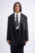 Oversized blazer with shoulder pads, front buttons, and two front pockets. Features a back vent and a single back pocket. Effortless, everyday look